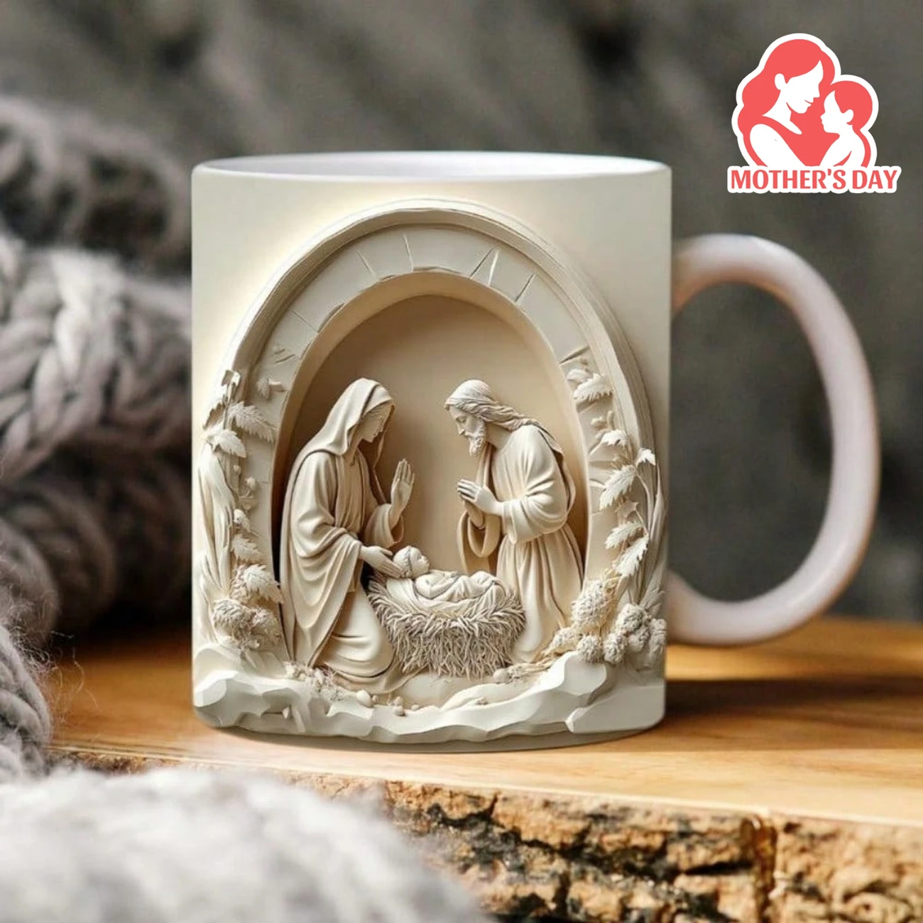 1pc 11oz 3D Nativity Scene Mug Baby Jesus Coffee Mug