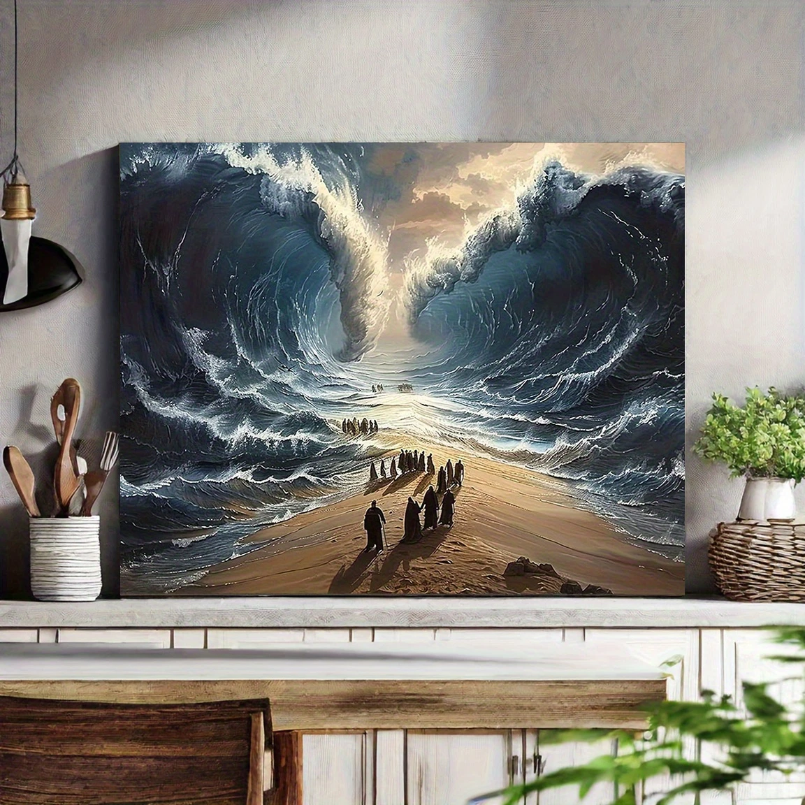 2D Flat 1pc Framed Canvas Wall Art- Parting the Red Sea Design, Perfect for Home, Bedroom, or Office Decor, Ready to Hang for a Creative& Inspirational Look, Ideal for Hotel, Cafe, or Living Room Decoration