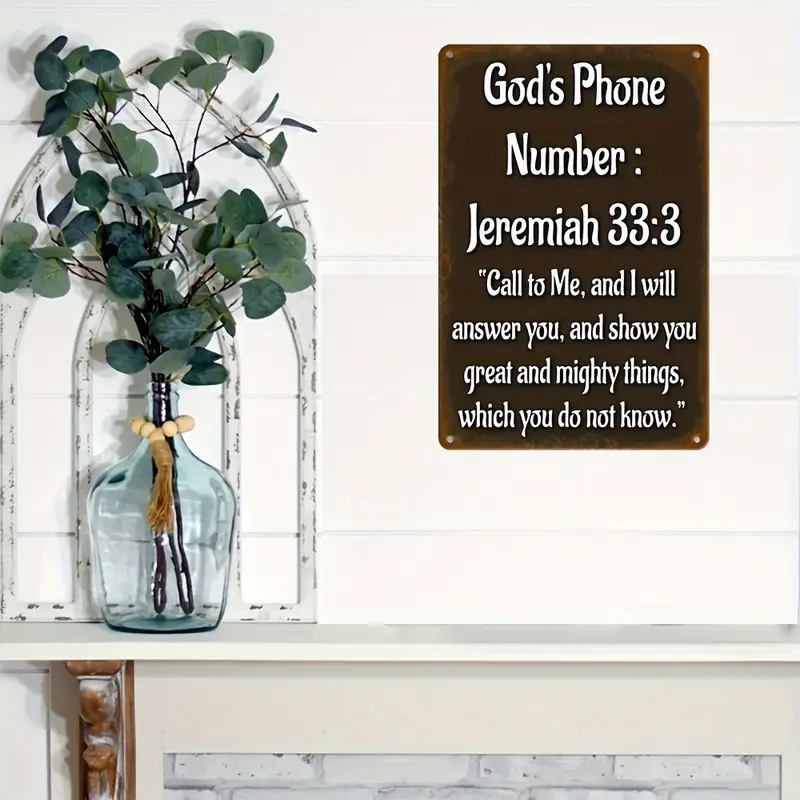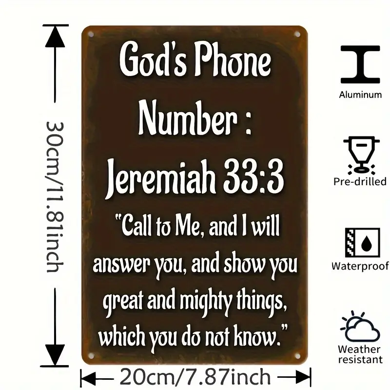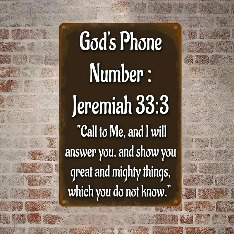 God’s Phone Number Jeremiah 33:3 Aluminum Sign – 8×12 Inch Religious Wall Decor for Bible Verse Enthusiasts, Home or Office Art, Bold Text Design | Weathered Finish